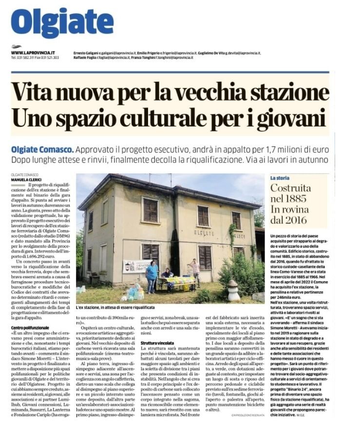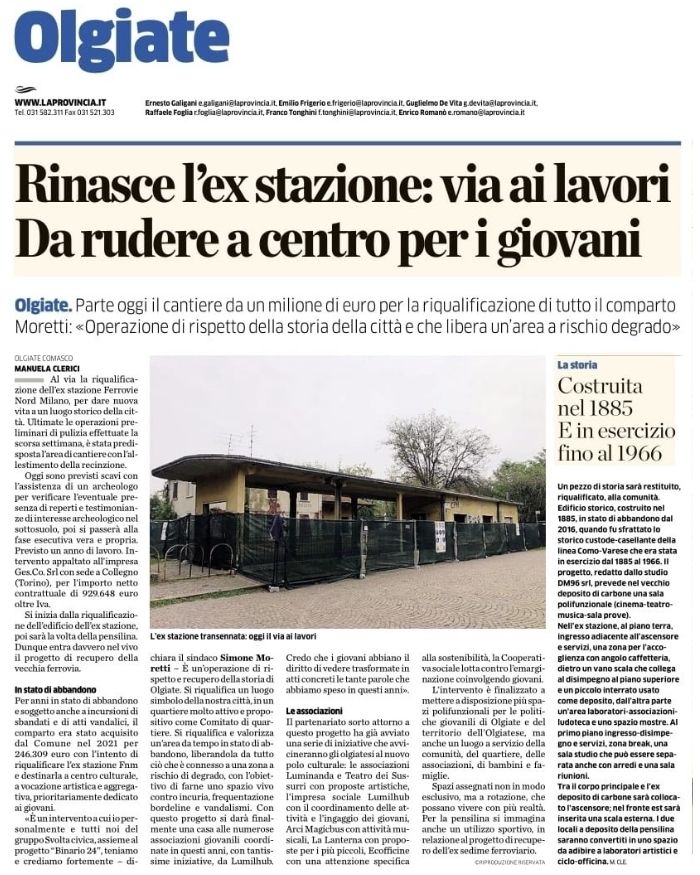 Nel 2022 Lumilhub ha facilitato un percorso di progettazione partecipata per la rigenerazione della ex stazione ferroviaria del Comune di Olgiate Comasco, con particolare attenzione al coinvolgimento dei giovani, delle realtà attive nel territorio e dei cittadini. Il percorso ha preso avvio a maggio 2022 con la costituzione e formazione di un Gruppo Guida: giovani, consiglieri comunali, residenti e commercianti del quartiere, referenti di associazioni e cittadini olgiatesi incaricati di accompagnare e promuovere il percorso di confronto con la cittadinanza con il supporto degli operatori di LUMILHUB.