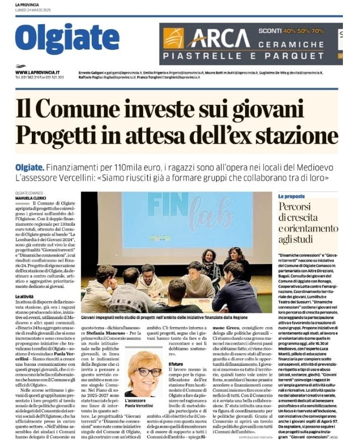 #DINAMICHE CONNESSIONI è nato per accompagnare i comuni dell’Olgiatese verso una gestione consapevole e sinergica delle politiche giovanili, trasformandole in una priorità per le amministrazioni locali. Il progetto aveva l’obiettivo di coinvolgere un numero sempre maggiore di giovani, guidandoli in percorsi di crescita personale e promuovendo il protagonismo attivo all’interno delle comunità.
